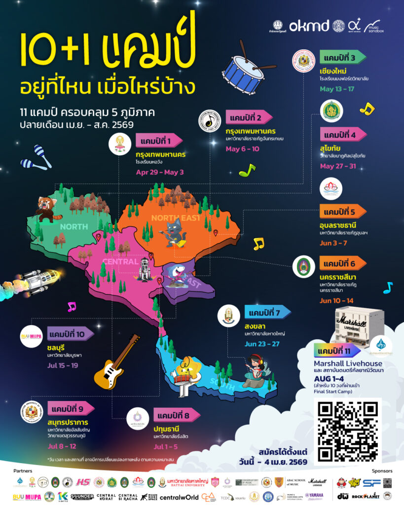ที่แรกที่เดียวที่จะมีแคมป์ทั่วประเทศ ครอบคลุมทุกภูมิภาค แถมขนทัพศิลปินไปให้น้อง ๆ แบบจัดเต็ม! 10+1 แคมป์ Music Boost Camp ไปที่ไหนบ้าง ไปดูกัน!